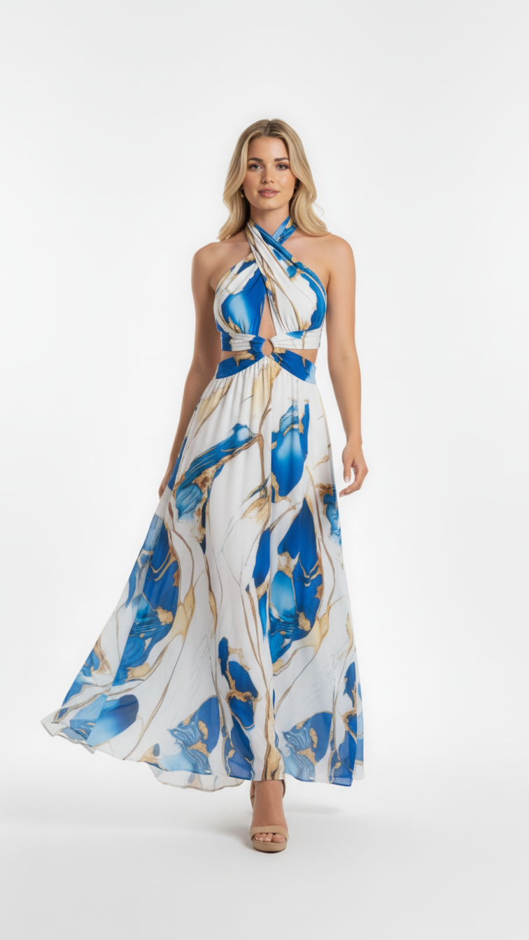 Es la definición de un vestido que no solo se usa, sino que se siente: ligero, envolvente y con la presencia de una pieza de diseño.